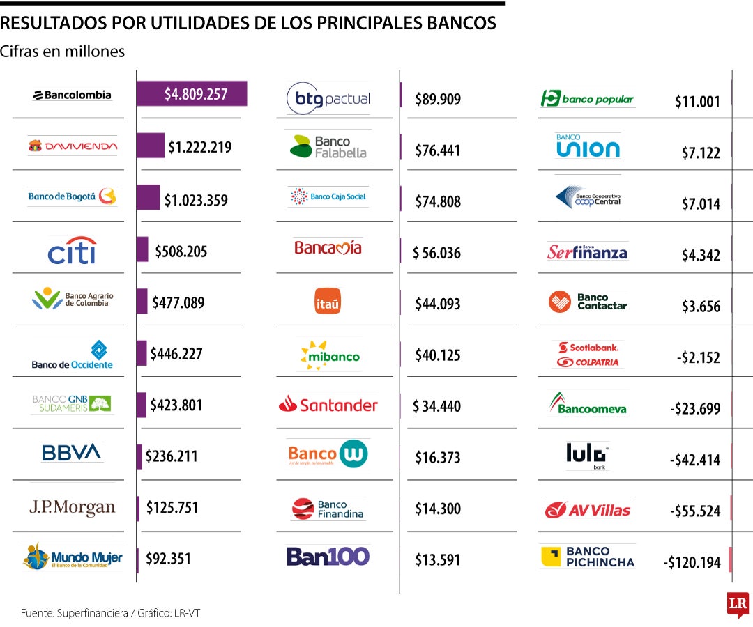 Bancolombia, Davivienda y Banco de Bogotá, los de más utilidades hasta septiembre
