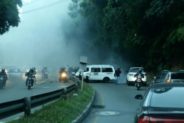 La micro-buseta, de color blanco, quedó atravesada en medio de la vía durante varios minutos, situación que generó un monumental trancón en esa importante vía que comunica a Medellín con el oriente de Antioquia y el aeropuerto internacional José María Córdoba de Rionegro.
