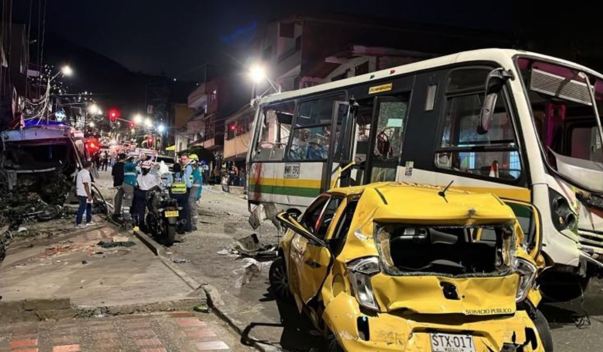 Accidente vial en Medellín deja 16 heridos y 2 fallecidos. Bus sin frenos impacta a varios vehículos en Manrique.
