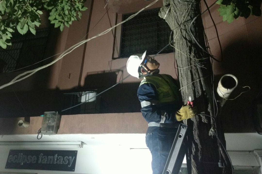 El recorrido comenzó en la Carrera Quinta con Calle 22 hasta la 19, donde se intervinieron 21 árboles, en los que se encontraron 47 conexiones fraudulentas y se retiraron 189 metros de cable.