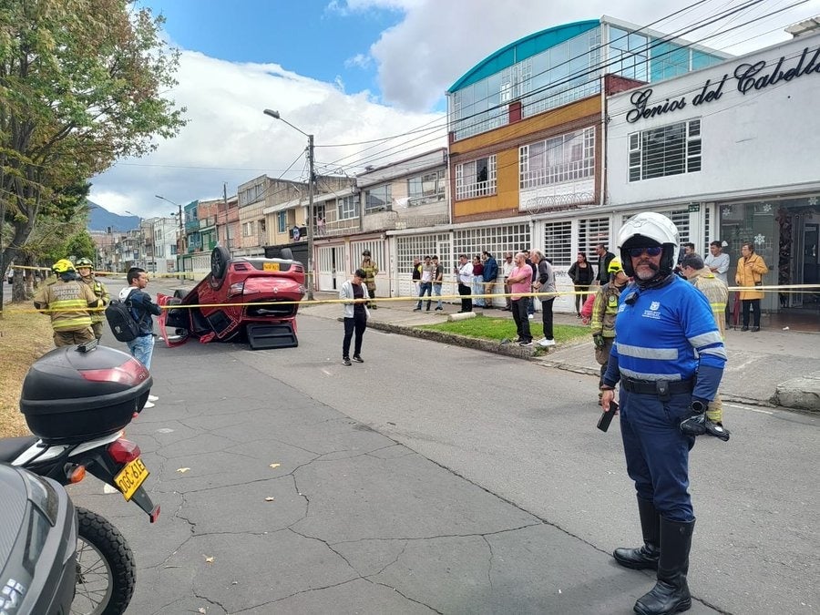 Un accidente de tránsito entre dos automóviles dejó un volcamiento y movilidad restringida en la localidad de Los Mártires, en la Calle 2 con Carrera 28.
