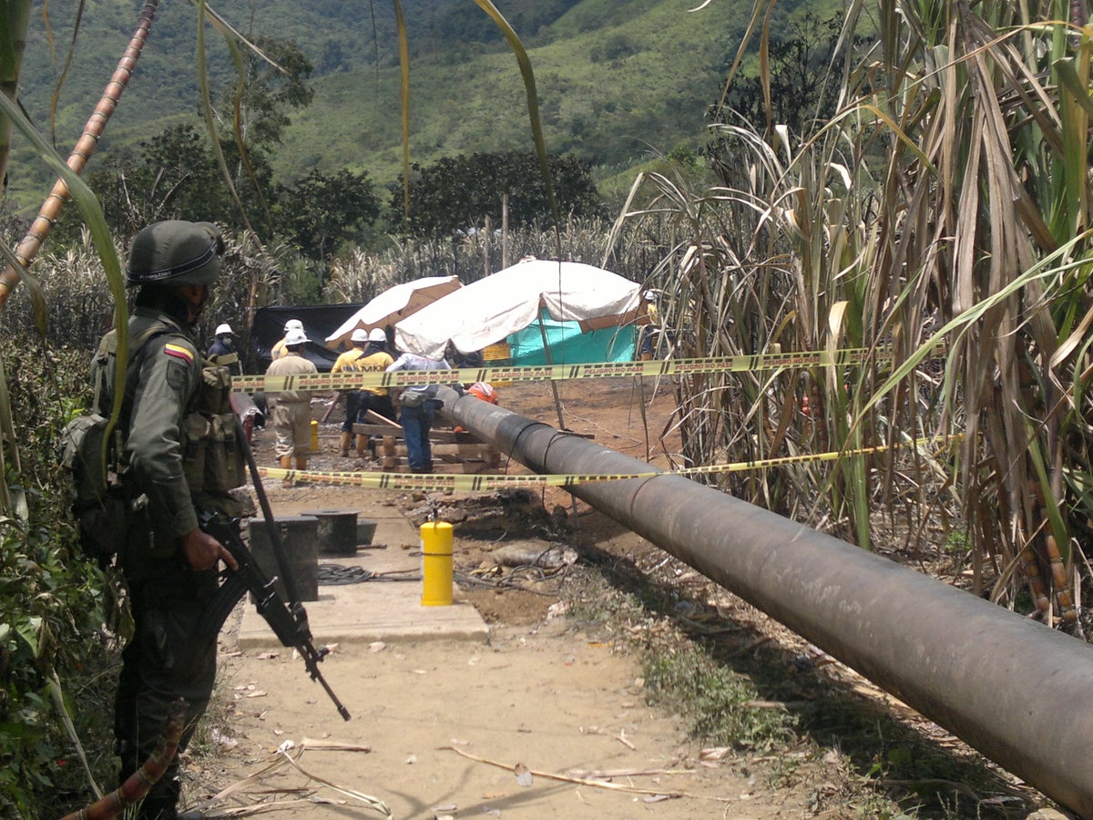 Luego de la explosión, uniformados del Ejército adscritos al comando de la Fuerza de Tarea Quirón, se desplazaron al lugar y hallaron un cráter de grandes proporciones y una mancha del hidrocarburo sobre la zona verde.