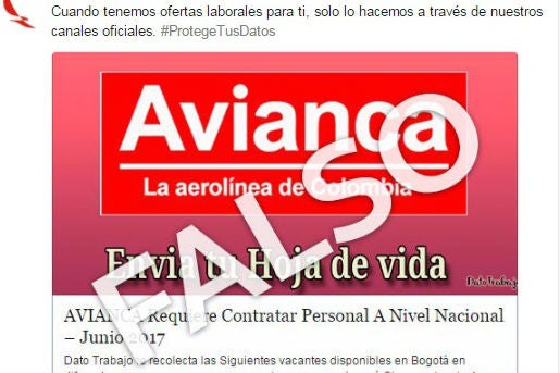 Teniendo en cuenta lo anterior, la aerolínea Avianca ha emitido varios mensajes a través de sus redes sociales, aclarando que todo se trata de un engaño.