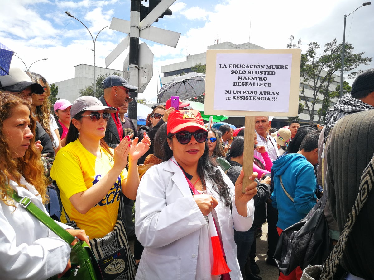 Enfrente de la Secretaría de Educación en Bogotá, en la avenida El Dorado con carrera 66, los maestros iniciaron un bloqueo en medio del paro nacional indefinido que ya completa tres semanas.