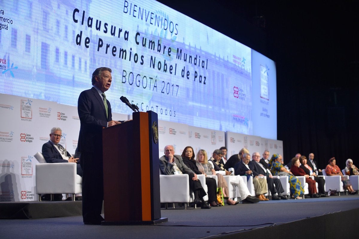En la clausura de la cumbre que por primera vez se realizó en América Latina, los 27 laureados reconocieron en Colombia un gran ejemplo de paz para el mundo. El presidente Juan Manuel Santos agradeció a los líderes que visitaron el país; "quiero agradecer muy especialmente a los Premios Nobel de Paz por el respaldo a los colombianos hacia el camino a la reconciliación, gracias por destacar en la declaración final las lecciones que le dejan al mundo nuestro proceso".