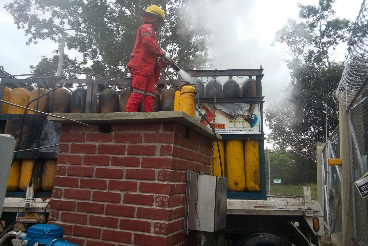 "Se está haciendo refrigeración a cilindros de gas, este incendio ocurrió en el momento de la descarga del químico en la planta, que es alimentada por la planta del municipio de Tocaima", indicó Farfán.