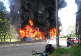 Bus del sistema MIO, se quemó en la vía Panamericana