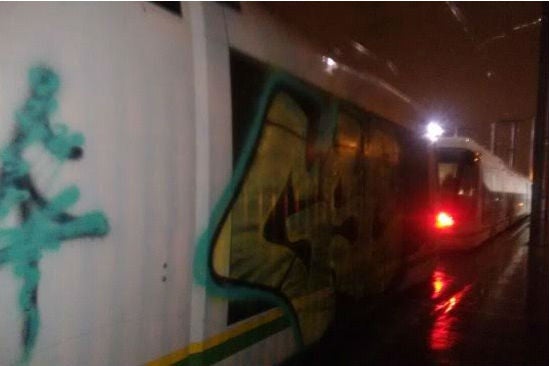 Las directivas del Metro confirmaron que hay una investigación para determinar si el grafiti pintado en el Tranvía está relacionado con las pinturas en uno de los vagones del Metro de Medellín, al parecer realizado con aerosoles por parte de varios jóvenes que ingresaron a los talleres en Bello a través de las alcantarillas.