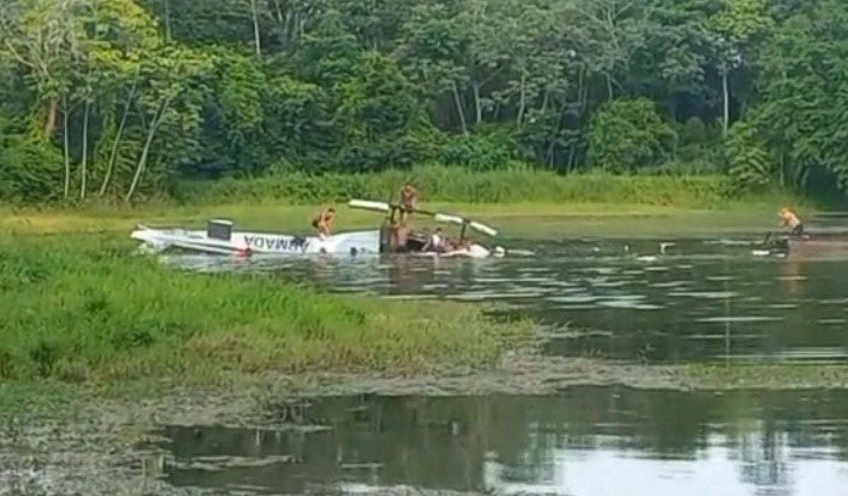Mediante vídeos que rápidamente se han difundido en redes sociales, se logra evidenciar el helicóptero sumergido casi a totalidad en el agua, adicionalmente, en una lancha se acercan otras personas para auxiliar a los afectados.