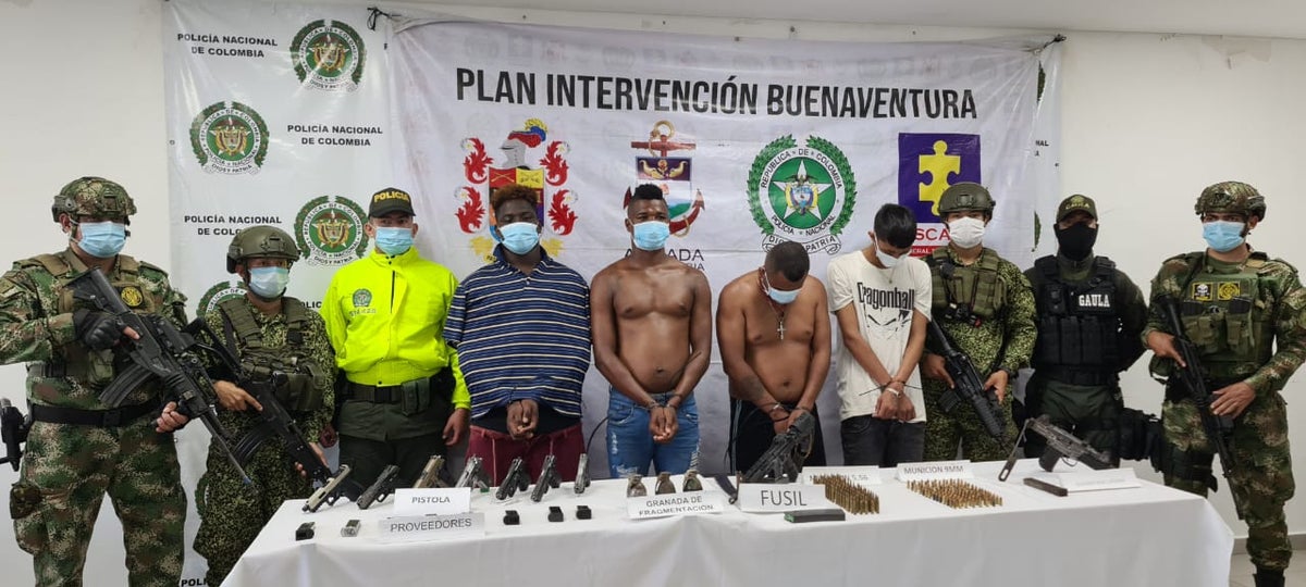 En desarrollo de operaciones interinstitucionales entre Ejército, Policía, la Fiscalía e Infantería de Marina, en la vereda Zacarías en zona rural de Buenaventura fueron capturados cuatro presuntos integrantes de las disidencias ‘Jaime Martínez’ que delinquen en la zona.