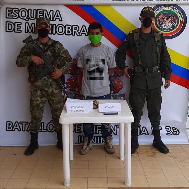 La operación se realizó en la vereda Medio Rancho, en zona rural de Planeta Rica, cuando se recibió la información de la Red de Participación Cívica acerca de la presencia del sujeto en la zona.
