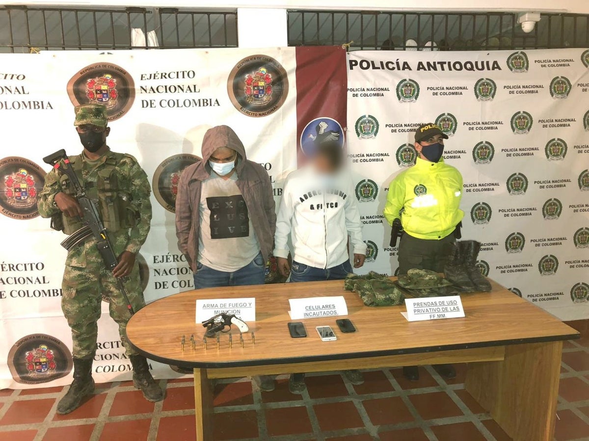Los dos detenidos tenían en su poder armas y prendas de uso privativo de las Fuerzas Militares.