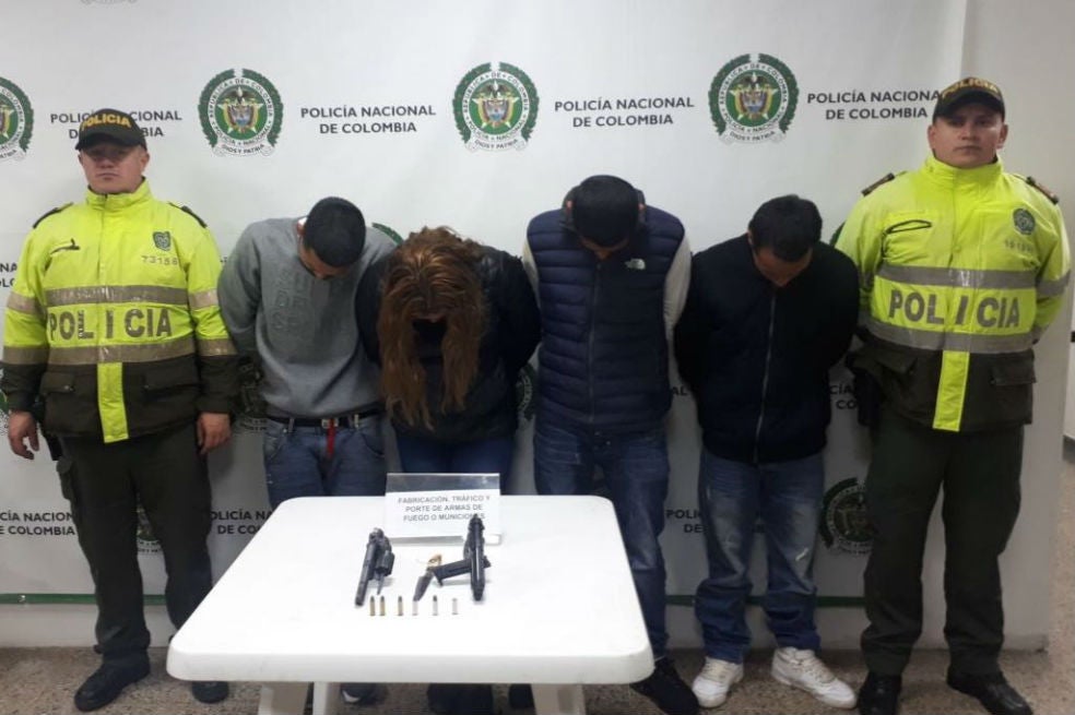 Los uniformados arribaron al lugar y capturaron en flagrancia a tres hombres y una mujer a quienes se les encontraron varias armas de fuego y un arma blanca.