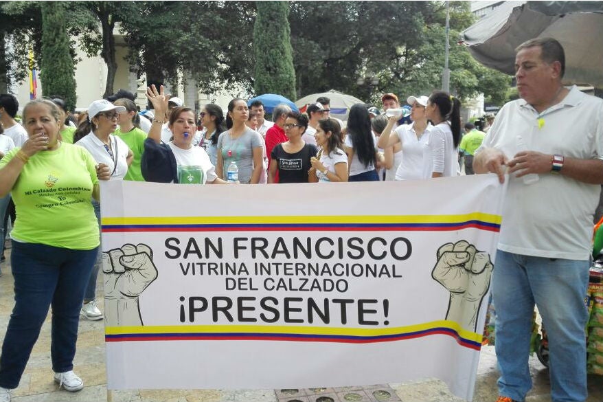 Gremio del calzado y textileros de Santander realizaron un plantón este jueves 26 de octubre, contra los impuestos y mercancía de contrabando que está bajando sus ventas.