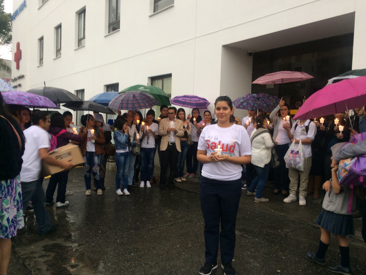 Con velas blancas y en una cadena humana, varios manizaleños se dieron lugar en el Hospital Infantil, con el propósito de hacer un llamado a las EPS ya mencionadas, para que cancelen sus deudas y así puedan atender a los niños del departamento que se han visto afectados sin el servicio.