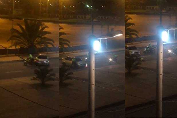 A través de redes sociales se ha conocido un video en el que varios agentes de la Policía de Tránsito en Bogotá realizan una persecución a un vehículo que aparentemente estaba participando en piques ilegales. En las imágenes se evidencia el momento en el que un carro embiste a uno de los uniformados, haciéndole caer de la motocicleta en la que se movilizaba.