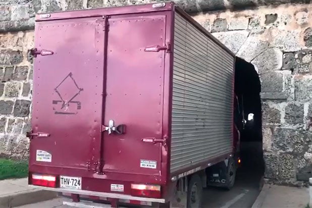Durante el mediodía del miércoles, un furgón intentó ingresar por la Boca de Santo Domingo del cordón amurallado de Cartagena, sin tener en cuenta el espacio disponible.