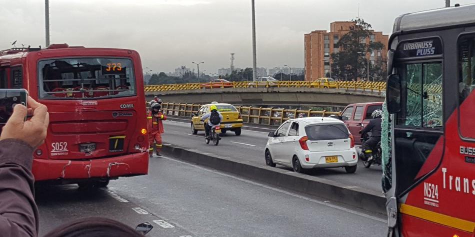El choque entre dos articulados de Transmilenio ha desatado complicaciones en la movilidad en la Avenida Suba.