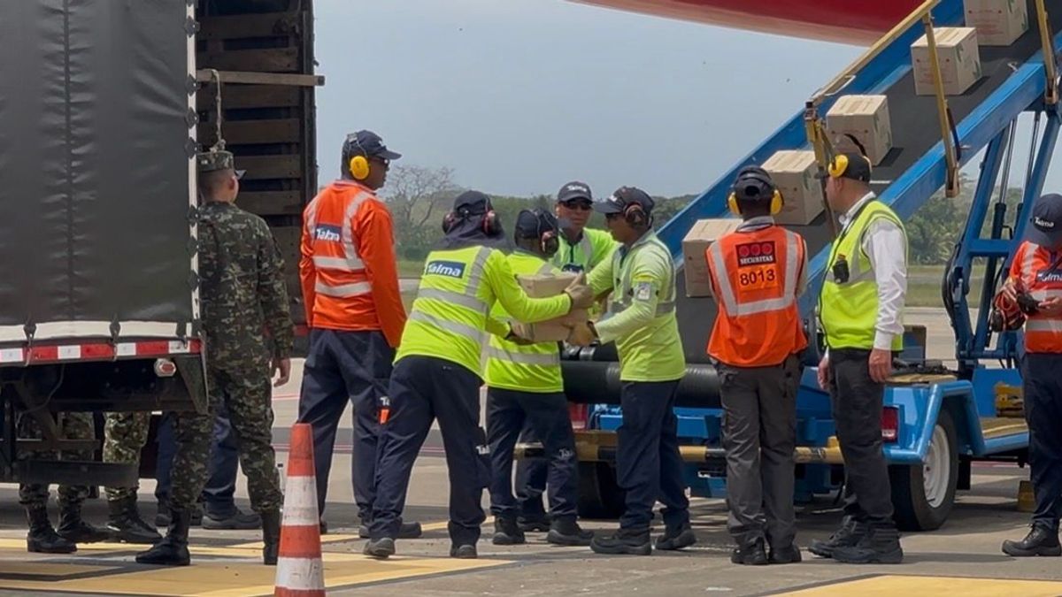 El cargamento arribó a Montería a bordo de un avión de carga A330, en una operación especial que articuló esfuerzos desde varios sectores, con el objetivo de atender de manera urgente a miles de familias afectadas por el invierno.