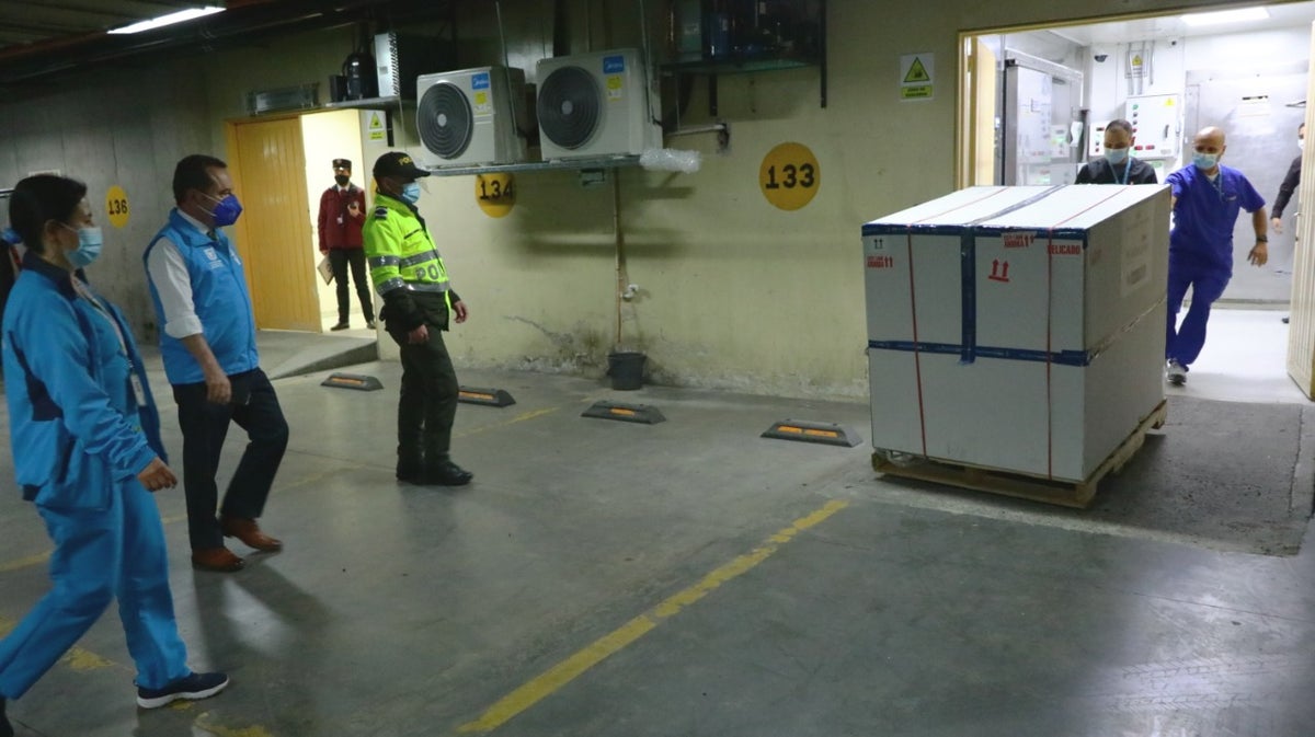 Las vacunas contra la covid-19 llegaron al aeropuerto internacional El Dorado de donde fueron trasladadas a las bodegas del Ministerio de Salud en la zona franca de la capital del país.
