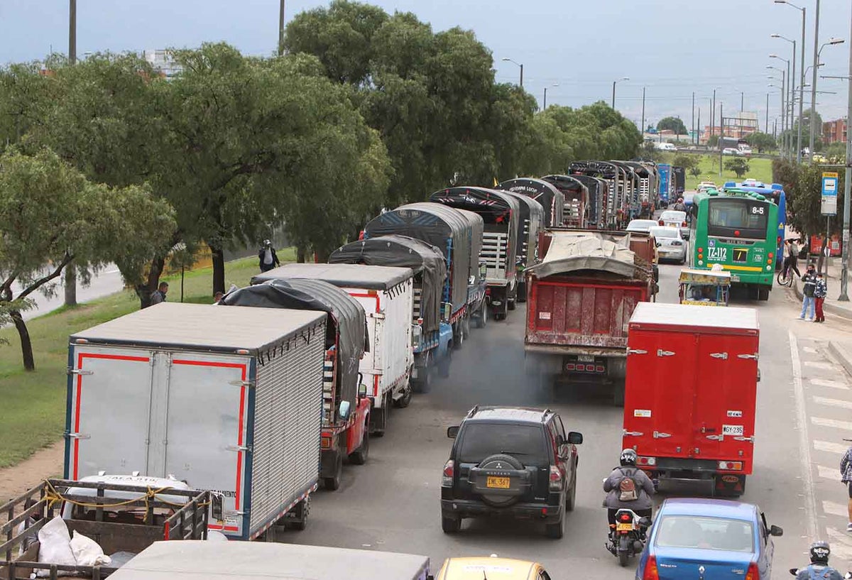 Conductores de vehículos de carga realizan plantón en Bogotá