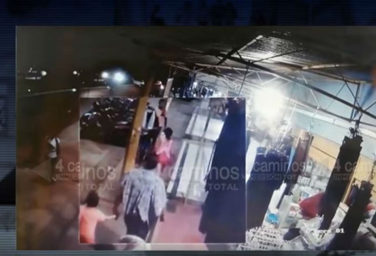 Sharik Buitrago caminando sola hacia el local, donde después sería abordada por Edinson.Crédito: Captura de video de Cuatro Caminos