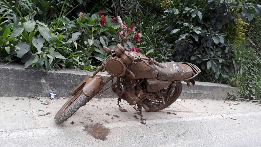 Las tres primeras personas que se salvaron, fueron una pareja y un menor de edad que se movilizaban en una motocicleta y al percatarse de la avalancha, se pusieron a salvo arrojándose de la moto en la que viajaban; el vehículo fue arrastrado unos metros por el alud de tierra.