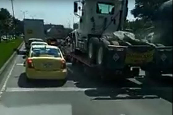Luego de conocerse esta misma semana la forma como de manera inadecuada una grúa carga un bus del Sistema Integrado de Transporte (SITP), ahora se conoce el video de una grúa que lleva el cabezote de una tractomula.