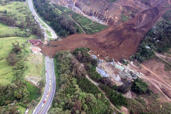 El director de la Unidad Nacional de Gestión de Riesgo, Carlos Iván Márquez, aseguró que se avanza en la remoción del material que tapona los cuatro carriles de la autopista y advirtió que "es un operativo de rescate riesgoso por la inestabilidad del terreno".