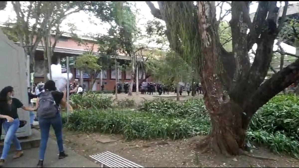 Disturbios en la Universidad de Antioquia. Crédito: Cortesía Guardianes Antioquia.