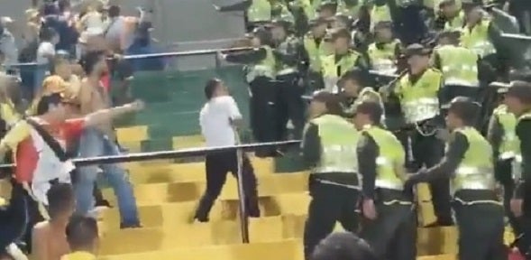 El comandante de la Policía Metropolitana de Bucaramanga, general Manuel Vásquez, indicó que la riña se registró luego que un grupo de aficionados intentara ingresar a la gramilla y a la tribuna occidental del escenario deportivo.
