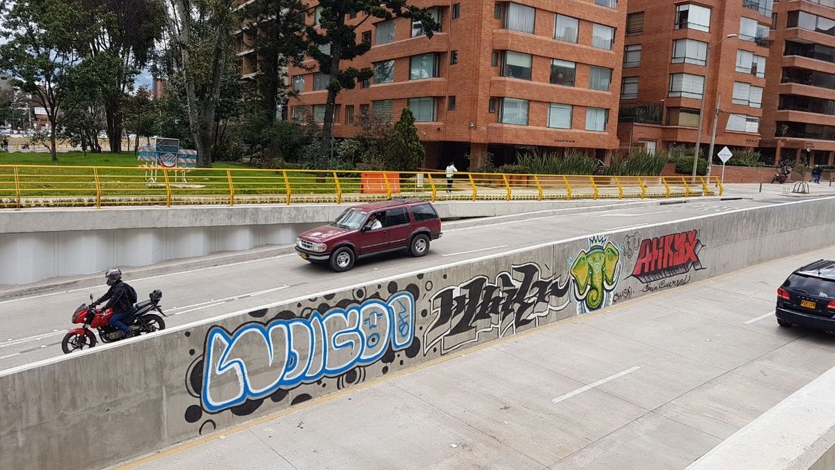 La Administración de Bogotá rechazó la aparición de grafitis en la obra del deprimido de la calle 94, los cuales fueron pintados pocos días después de su inauguración.