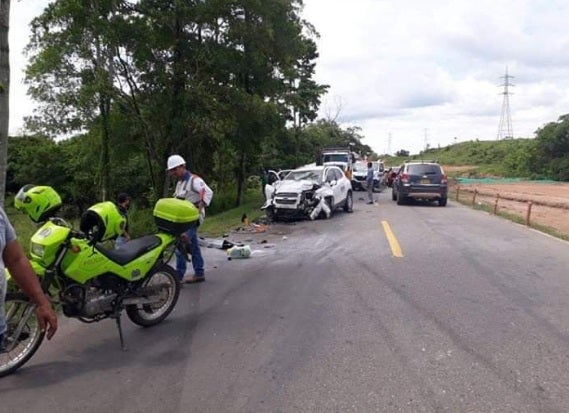 El teniente Jhon Giraldo, de la Policía de Tránsito del Magdalena Medio, señaló que se trató de dos vehículos particulares que se estrellaron de frente, al parecer por exceso de velocidad e invasión de carril.