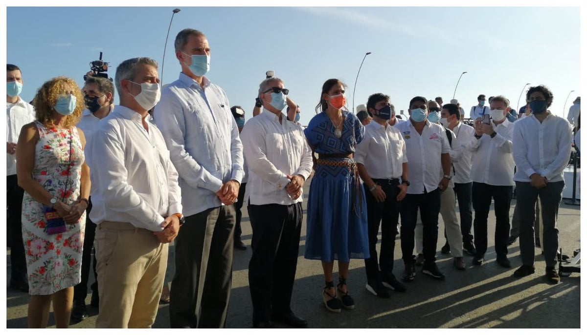 El Presidente Iván Duque realizó un recorrido por el Puente Pumarejo uno de los más grandes del país, junto con el Rey Felipe VI, el alcalde de Barranquilla Jaime Pumarejo y la ministra de Transporte Angela María Orozco, esta visita se registró aprovechando la visita del monarca al departamento del Atlántico para asistir el Congreso Mundial de Juristas.