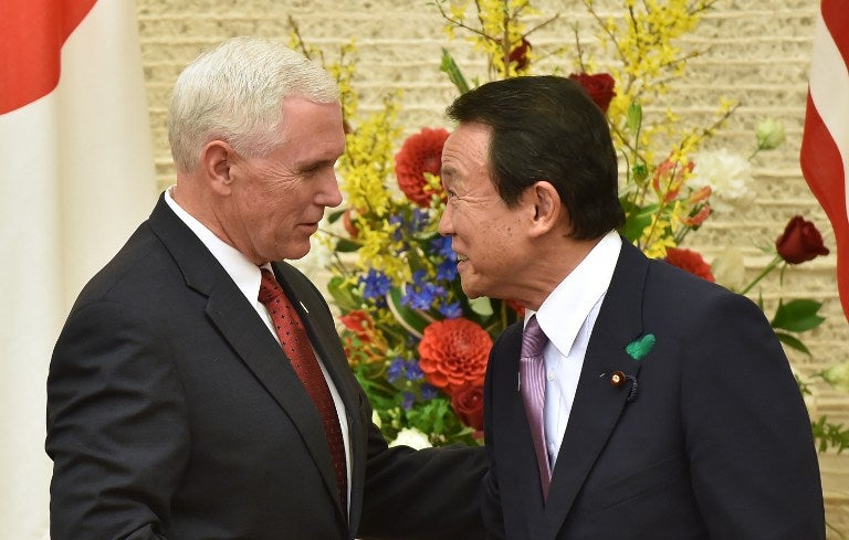 La "alianza entre Estados Unidos y Japón es la piedra angular de la paz y la seguridad en el noreste de Asia", declaró Mike Pence al entrevistarse con el primer ministro nipón Shinzo Abe.