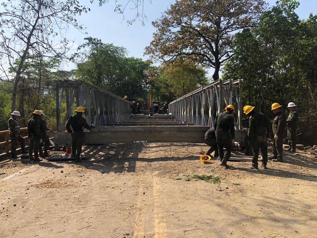 Además, dieron a conocer que la estructura de 27 metros de largo, es un puente Acrow triple reforzado, que cuenta con una capacidad para resistir hasta 52 toneladas de peso.