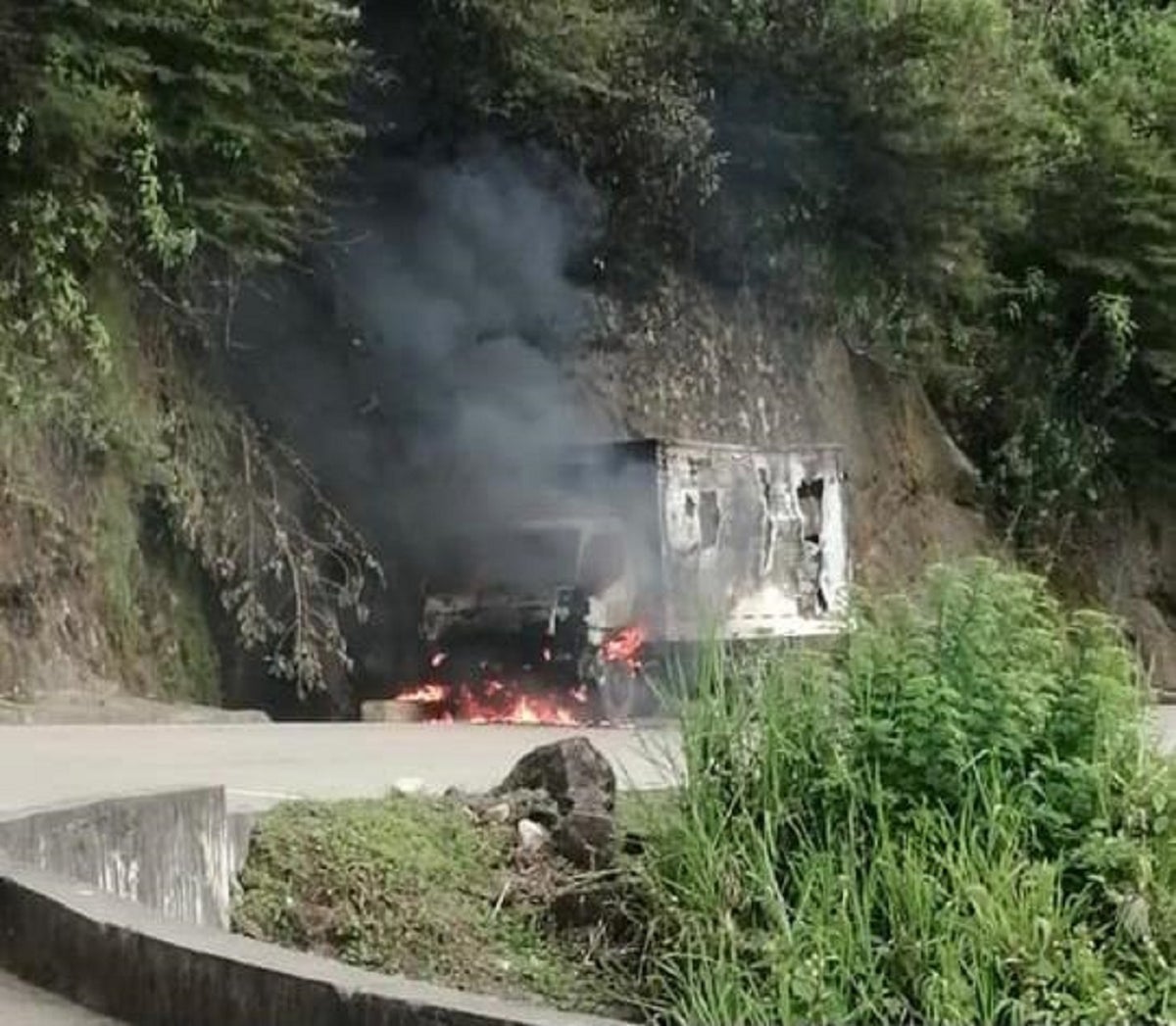 ELN incineró otro vehículo de carga en Bolívar, Cauca