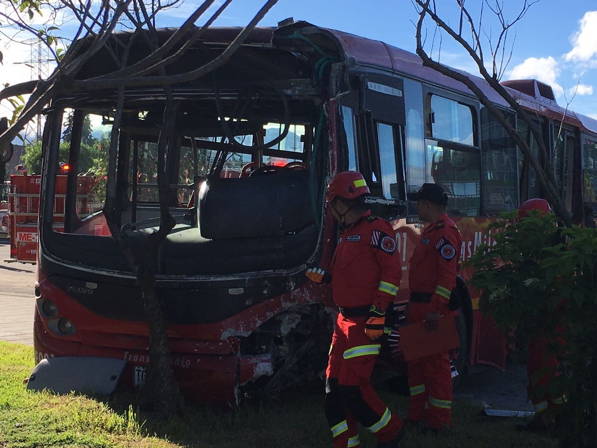 La Policía de Bogotá investiga las causas del accidente de un bus de Transmilenio que, luego de que su conductor perdiera el control, chocó contra dos árboles, un poste de energía, invadió el carril de vehículos particulares y terminó en un parque deportivo de la localidad de Kennedy.
