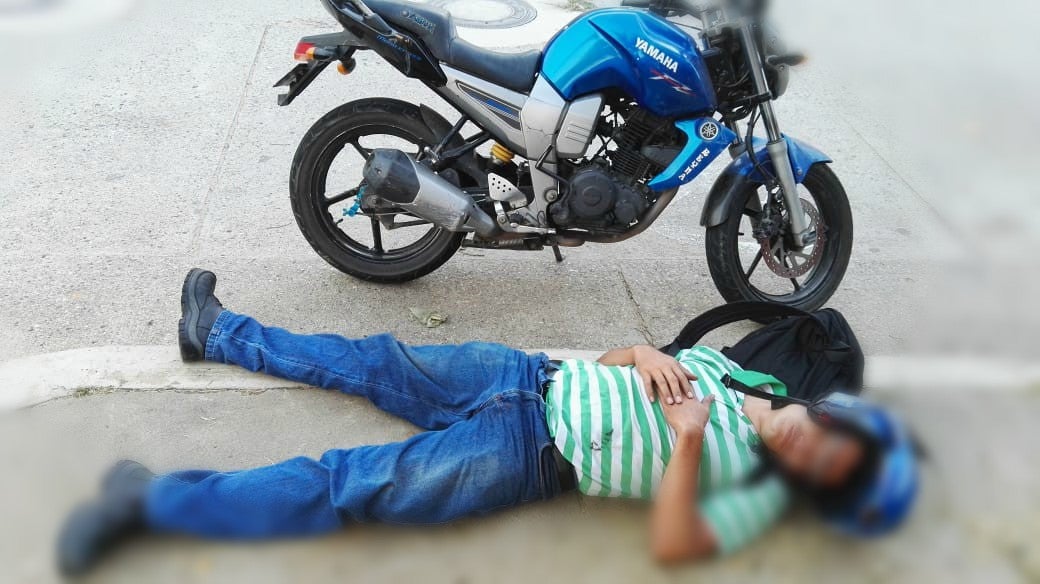 El hombre estaba tirado en el suelo y hasta tenía las llaves de la moto en la mano.