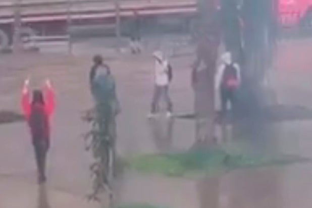 Los uniformado debieron pasarse sobre los separadores de la vía de Transmilenio para evitar ser golpeados por las piedras que les estaban lanzando.