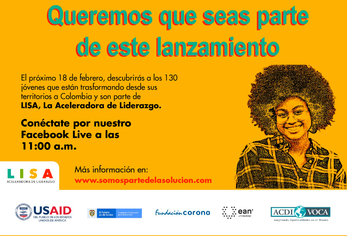 Se realizará de manera mixta. Presencialmente el próximo 18 de febrero en Comfachocó, Quibdó, de 11 am a 1 pm, con 35 personas, teniendo en cuenta todos los protocolos de bioseguridad. Asimismo, se enlazará de manera virtual a los jóvenes en territorio seleccionados para LISA a través de una transmisión vía streaming. Allí se les dará la bienvenida por medio de una pantalla LED.