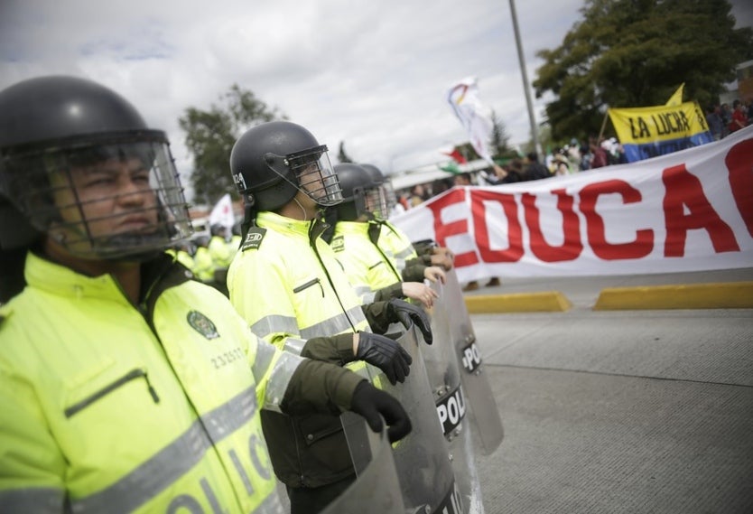 Los uniformados dispararon gases lacrimógenos para intentar contener a la multitud. De acuerdo con las autoridades, los estudiantes también arrojaron piedras, 'papas bomba' y bombas 'molotov'.