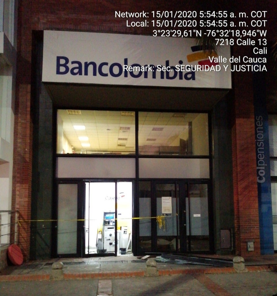 El caso ocurrió a las 2 de la mañana, nos informaron sobre la explosión en el sitio, no hubo afectaciones a personas, solo daños materiales alrededor del cajero. La hipótesis más fuerte es el robo del dinero porque pudimos observar la apertura en el aérea donde se encuentra el dinero”, aseguró el secretario de Seguridad y Justicia de Cali, Carlos Alberto Rojas.