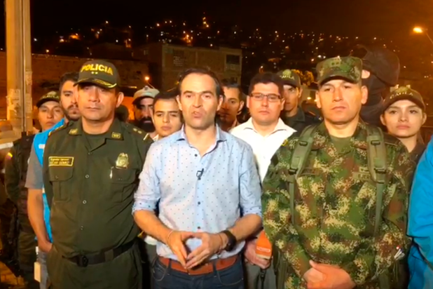 La balacera ocurrió muy cerca del lugar donde el alcalde de Medellín iba a dar una alocución, que se retrasó una hora. El mandatario advirtió que continuará en la zona hasta que se restablezca en orden público en la Comuna 13.
