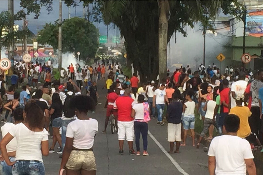 Esta tarde el Esmad intentó retirar los bloqueos que impiden el ingreso y salida de camiones del puerto, pero los manifestantes no cedieron.