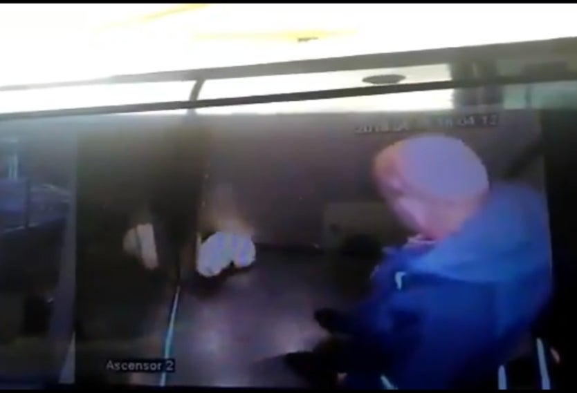 Los hechos se registraron el pasado lunes 15 de abril en el edificio en donde vive el funcionario, de nombre Juan Vázquez. La cámara de seguridad del ascensor captó el momento en que el hombre golpea al indefenso perro, dándole incluso patadas al animal.