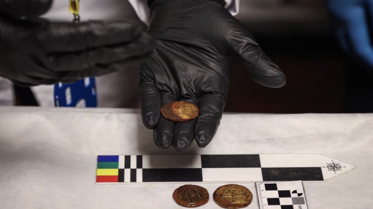 Según Carulla, las tres macuquinas, monedas coloniales halladas en la zona, fueron trasladadas al Museo Nacional, donde están siendo intervenidas por la restauradora Carla Riera, integrante del equipo del Ministerio de Cultura.