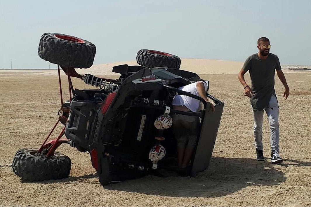 El defensa del Barcelona y esposo de Shakira, Gerard Piqué, sufrió un accidente mientras pilotaba un jeep en las arenas del desierto de Catar.