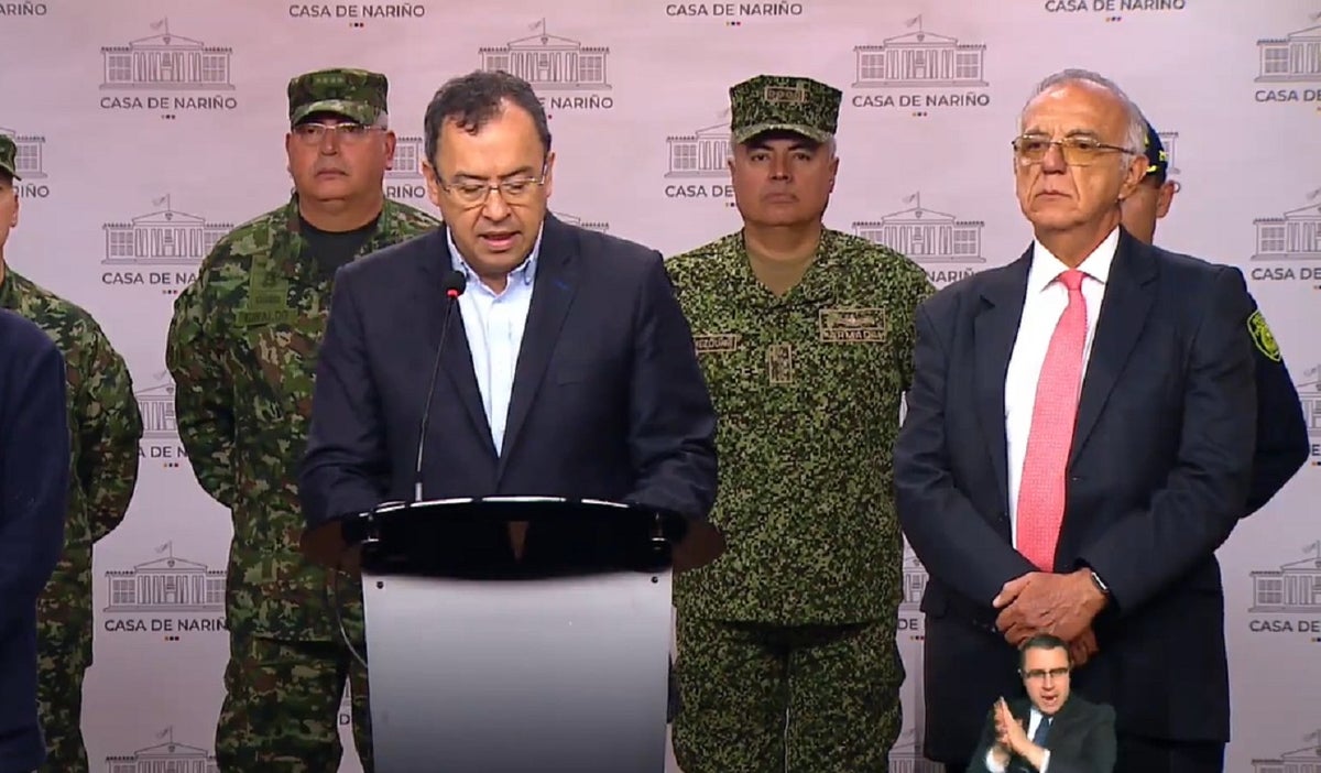 El ministro Alfonso Prada aclaró que la fuerza pública seguirá garantizando la seguridad de los colombianos en los territorios. “La suspensión de operaciones militares y operativos policiales, se hará sin perjuicio del cumplimiento de la función y obligación constitucional y legal de la fuerza pública, de preservar la integridad del territorio nacional, el orden constitucional y legal y asegurar las condiciones necesarias para el ejercicio de los derechos de libertades públicas”.