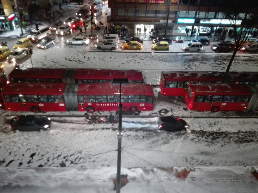 Las aguas en la capital parecían estáticas por la alta presencia de granizo, que hizo que los bomberos tuvieran que acudir a maquinas rastreadoras, para que fueran despejando la vías poco a poco.